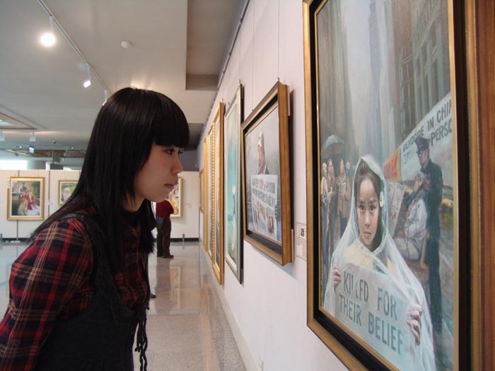 【明慧网二零零八年十二月二十二日】「真善忍国际美术巡回展览」历经欧、亚、美、非、澳五大洲四十余国,展出已经有上百场次。十二月十六日至二十五日每天上午九时至晚上八时,真善忍美展又在台湾国立成功大学图书馆艺术走廊隆重展出,共展出三十三幅油画作品。