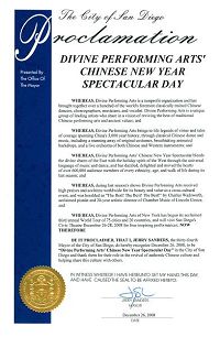 ![]() 圣地亚哥市长杰瑞 桑德斯颁发嘉奖令,把12月26日定为圣地亚哥“神韵晚会日”。 |