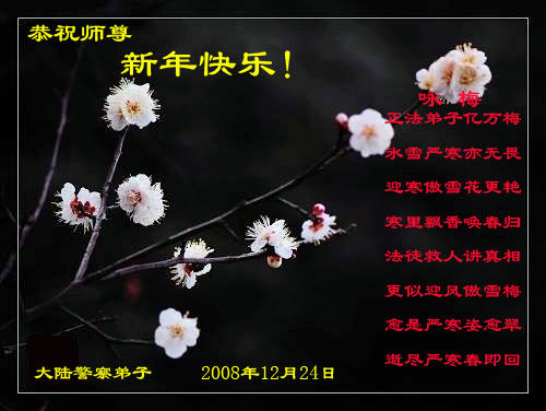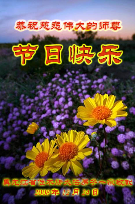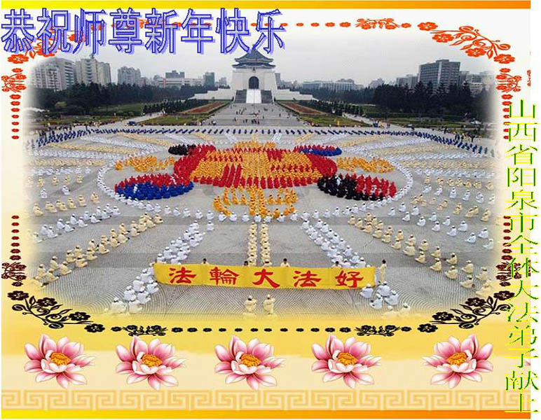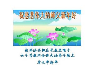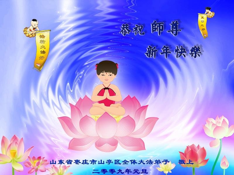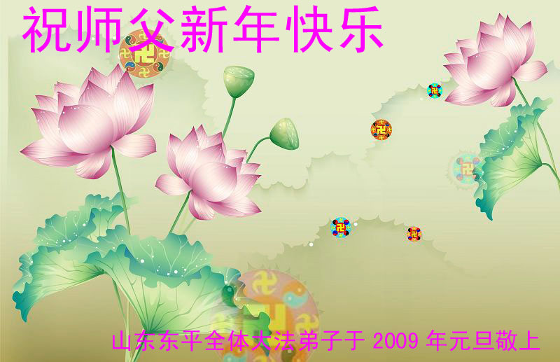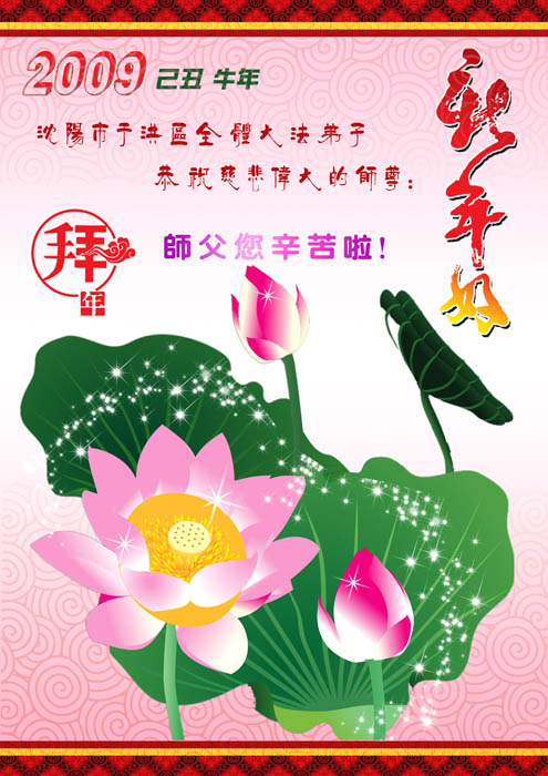 值此2009年新年来临之际,沈阳全体大法弟子恭祝师尊新年快乐!请师父放心,在新的一年里,沈阳全体大法弟子一定会做的更好,救人更多,路走的更正,不负师尊的苦度,不负众生的期待。