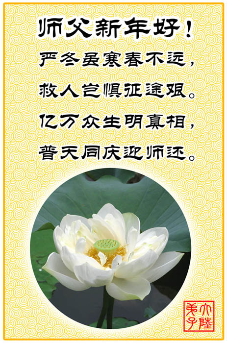祝:师尊新年好!我们一定跟上正法進程,救度众生,不辜负师尊的慈悲救度!