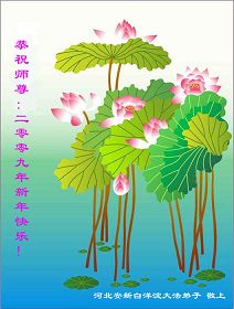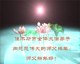 新年来临之际,怀着一份感激的心情,代表我们地区全体大法弟子向师父发出最衷心的祝愿:师父新年好!我们一定不忘师尊嘱托,努力做好三件事,救度更多众生!