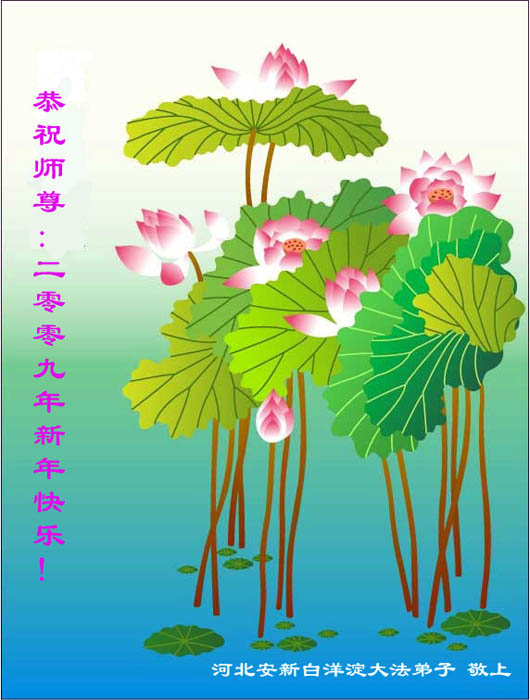 敬爱的师尊:2009新年来临之际,淮北市全体大法弟子恭祝您新年快乐!愿师尊在新的一年里多一些欣慰,少一些操劳!