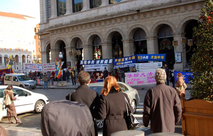 里昂市位于法国的南部,也是原定要召开欧中峰会的地方,这次中共借口法国总统要在波兰会见达赖喇嘛而单方面推迟了这次峰会,但法轮功学员仍坚持原来的计划,来此讲真相。
