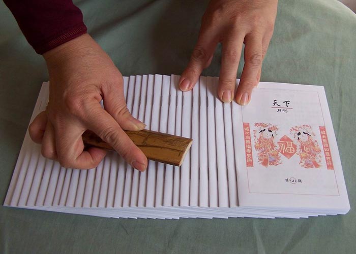 1. 从中间裁开,最好不使用大裁刀,因为裁的上下不垂直,裁过书的都知道。