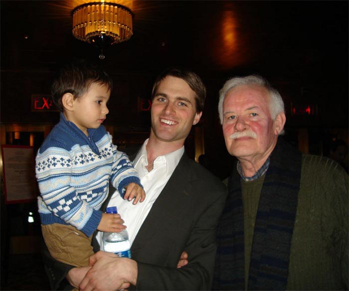 威斯康星退休教师依蒙·奥尼尔(Eamon O’Neil)先生(右)和他的儿子及孙子三代人2月9日在无线电城观看了新唐人全球华人新年晚会。他说《纽约时报》的歪曲报导很多内容都是无稽之谈。
