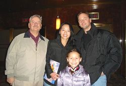 二月九日,日本东芝公司(Toshiba)美国全国培训部经理盖利·维尔(左一)看到《纽约时报》歪曲报道后,带家人来看神韵演出。