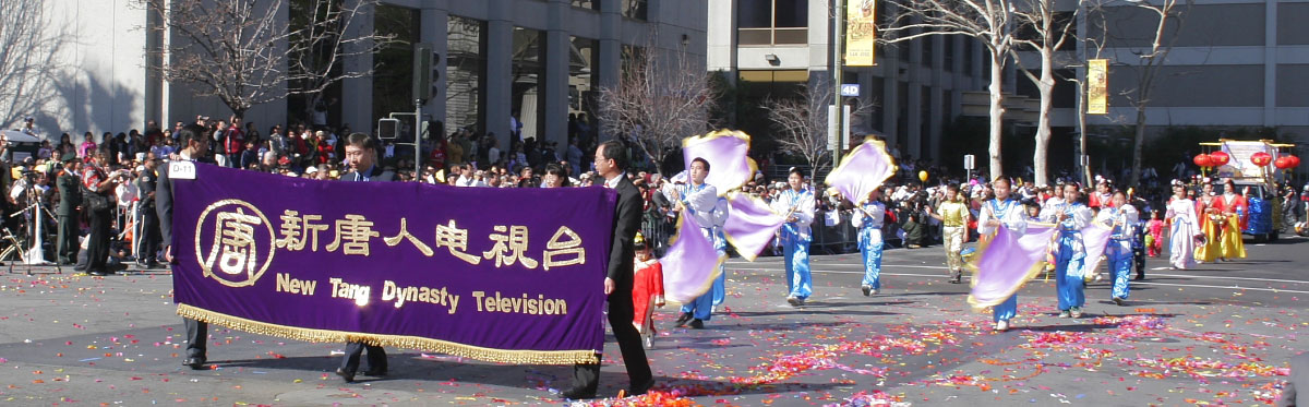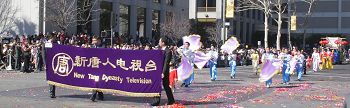 ![]() 新唐人电视台的队伍参加了游行。最近由该电视台举办的新年晚会在纽约造成轰动。 |