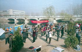 【明慧网二零零八年二月二十七日】一九九五年,山东蒙阴大法弟子在汶溪公园炼功洪法图片。
