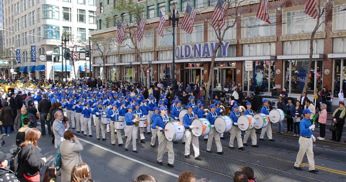 旧金山圣帕翠克日游行今年是第一百五十六届。一百多个来自各地的游行团体,沿旧金山Market大道行进,法轮功的美西天国乐团受人瞩目,雄壮的军乐震撼人心。