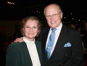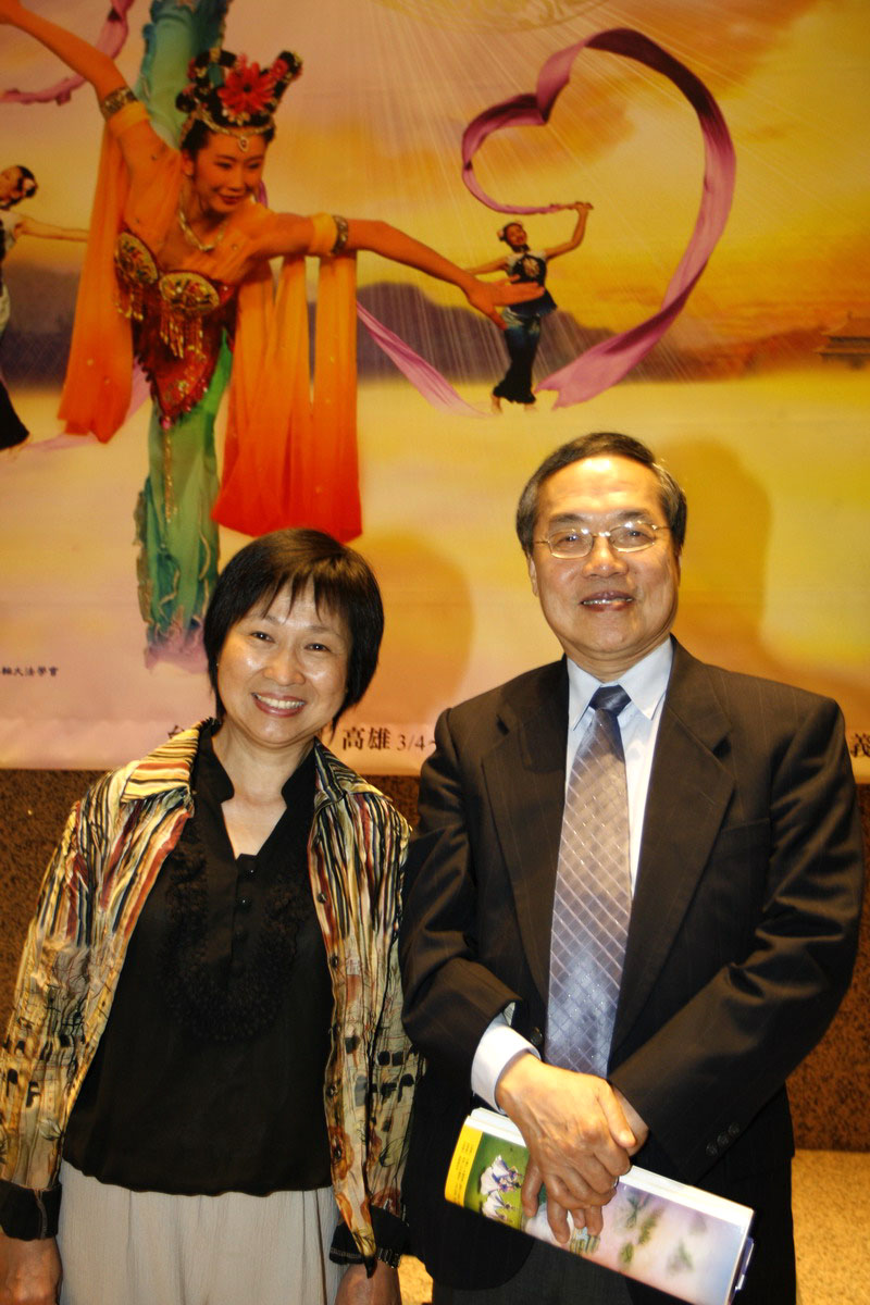![]() 政治大学台湾文学研究所所长陈芳明与夫人一同观赏三月十七日神韵在台北第五场的演出。 |