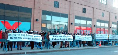 中共借奥运迫害法轮功 全球各地持续抗议游行