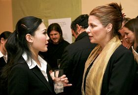 ![]() 瑞典著名歌剧演唱家Charlotta Huldt-Ramberg(右)与神韵巡回艺术团成员畅谈。 |