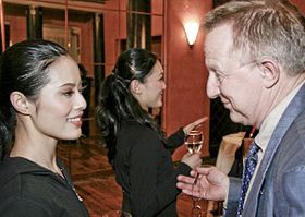 ![]() 斯特凡.丹尼逊(Staffan Danielsson)国会议员与神韵演员交谈 |