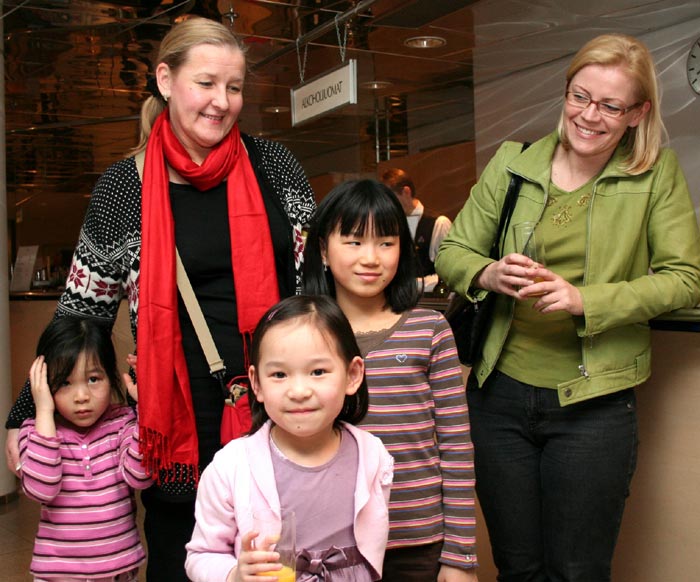 右边戴眼镜的是幼稚园老师Anette Rönnlund,前面小女孩是她在中国南宁收养的女儿。