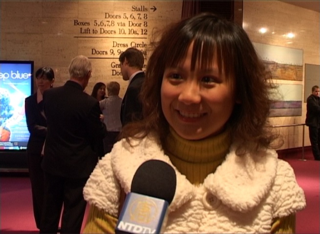 目前在南澳大学学习职业理疗的陆小姐来自四川成都,她在观赏了神韵在阿德雷德市的首演后非常激动,她说:“我在海外看到这样一台演出觉得很自豪,为自己是中国人而自豪。”她得意的向记者表示,坐在她旁边的老外因为她是中国人而向她竖大拇指。