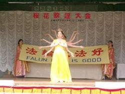 樱花节上展示美好功法