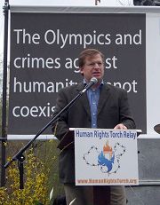 全美宗教领袖及非洲关切达富尔委员会副主席C. Herbert Oliver发言谴责中共支持苏丹当局对达富尔的种族清洗。他强调热爱中国,但更热爱人权,世界不应该支持北京政府(中共)的奥运,因为北京政府(中共)支持种族屠杀。