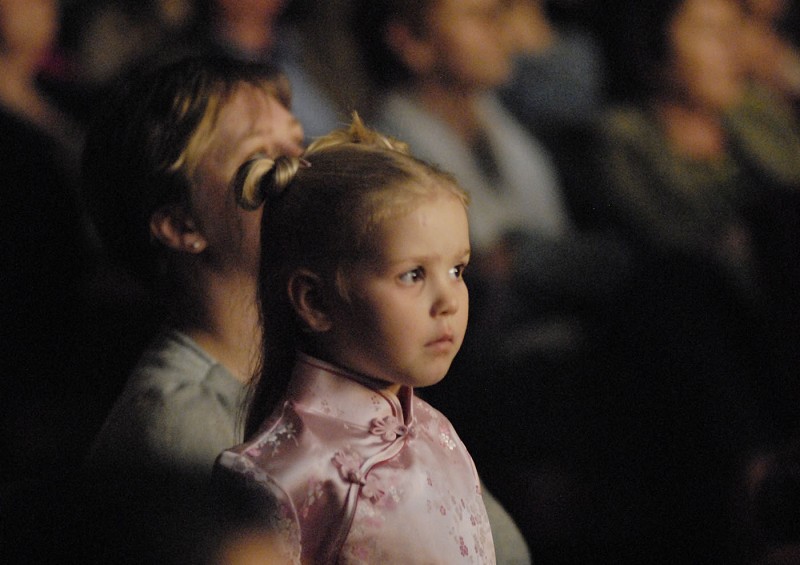 ![]() 身着旗袍的西人小女孩专注的神情 |