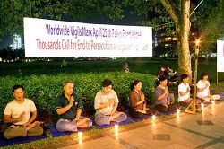 印尼法轮功学员来到中使馆前举行烛光纪念活动