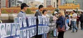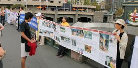 ![]() 法轮功学员在王子桥边拉起“勇气长城”,向民众讲述法轮功真相 |