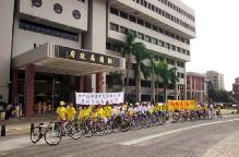 中共与江氏集团长期对法轮功学员施用电棍、关地牢、水牢、野蛮灌食、灌浓盐水、灌粪便、长期剥夺睡眠、性虐待、老虎凳等一百多种酷刑。为了让更多台湾民众了解法轮功真相及制止发生在中国大陆的残酷迫害,二零零四年起法轮功学员陆续在台北、新竹、台中、南投、嘉义、台南、高雄等地举办记者会、反迫害真人模拟酷刑展、图片展的车队游行。