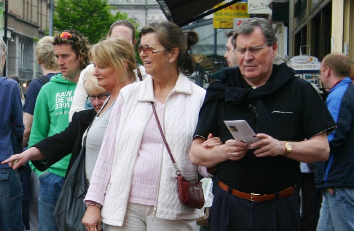 爱尔兰教育界人士吉姆。霍根(Jim Hogan)和他的德国朋友刚好路过,被功法演示和传统舞蹈所深深吸引。他表示,真的不理解为什么中共邪党要迫害这样一个祥和的修炼团体。他说,“我感到非常平静祥和,所以把我们吸引到这里来了。我以前听说过法轮功。我的感受是,在中国大陆对法轮功学员的迫害,很让我不可理解,怎么能够发起这场迫害?我今天看到不同年龄的年轻人在这里进行平和的功法演示,这么祥和,我真的不明白为什么中共要迫害法轮功。”