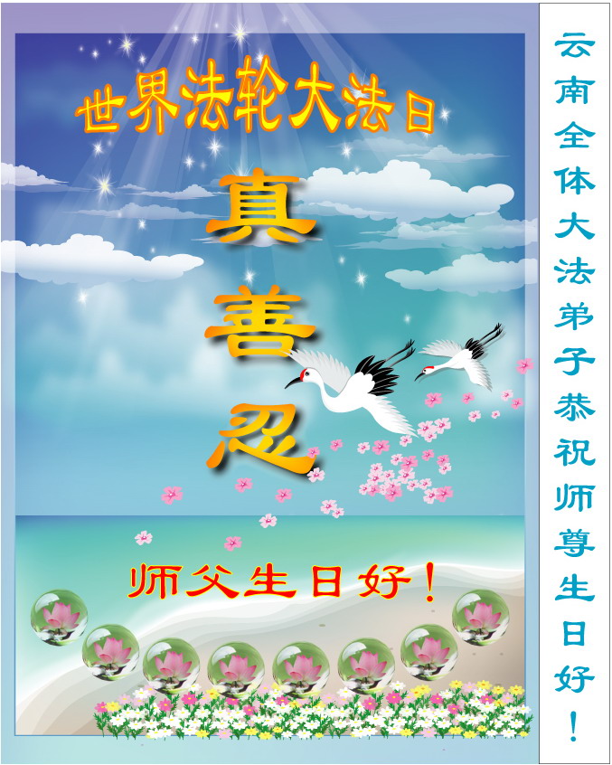 • 云南昆明市大法弟子恭贺师尊华诞!环宇同庆世界法轮大法日!