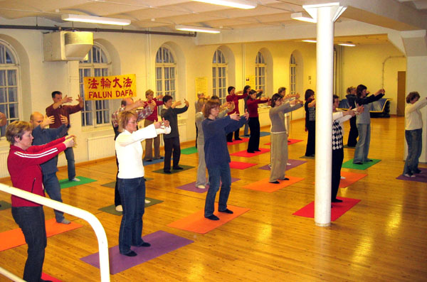 当学员们炼第二套功法时,听到一个身穿西装约三十多岁的过路男士喊道:“法轮功”,随后,他向身边的一位女士介绍说:“法轮功是一个非常不错的功法,在世界各地有很多人炼,但是在中国却被迫害……”他一边向地铁站走去一边继续向这位女士讲述着他了解的法轮功真相。