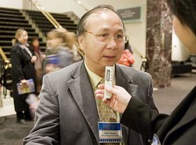 ![]() 民主中国同盟的张振龙先生在接受记者采访 |