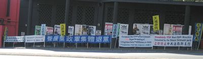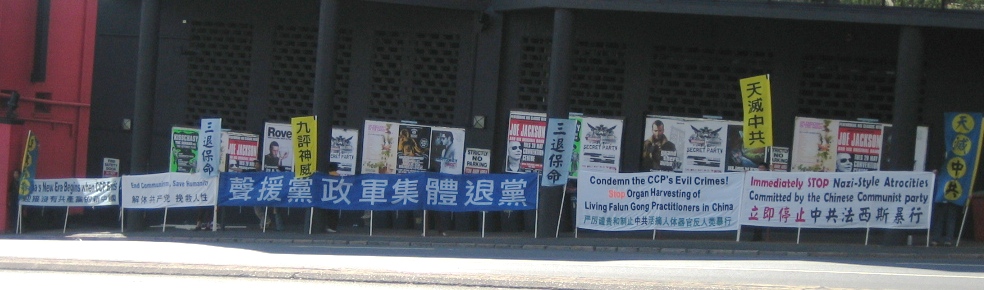 ![]() 五月三日,澳洲昆士兰退党服务中心在布里斯本中国城集会时打出的横幅。 |