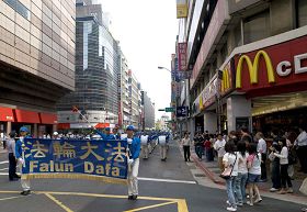 被“天国乐团”演奏吸引的店家何小姐说,游行队伍这么多人,竟然这么整齐有秩序,整个队伍给人感觉非常良好平和,人权诉求的主轴,告诉民众中国大陆正在发生的一些事实,没有一点政治意味的感觉,让她们感到非常温和与感动,