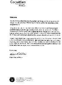 ![]() Coquitlam市长Maxine Wilson的贺信 |