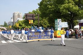与往年一样,本年度历时三天的“广岛鲜花节”,仍以首日拉开节日序幕的巡游表演为重中之重。历年皆受到大会组委会好评和观众喜爱的法轮大法的参游队伍,今年由近二百人组成。在巡演项目中,往年的花车改换成“法船”,并增加了天国乐团。他们给广岛市民带来惊喜,也给这个都市带来一片生机与活力。