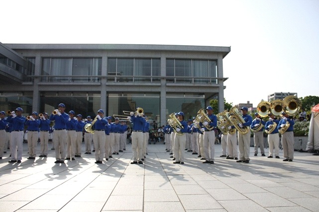 天国乐团在广岛是初次登场,他们一亮相便吸引住了广大市民;在一点二公里的巡游路程中,他们演奏了“法轮大法好”、“法鼓法号”和“法正乾坤”三个曲目。在八十五个参加巡演的团队中,虽然有几个团队也有军乐队演奏,但都不及天国乐团规模庞大。