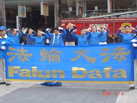 【明慧网二零零八年六月十一日】二零零八年六月八日,法轮功学员们在澳洲悉尼北区著名的曼丽沙滩的歌秀舞台步行街洪法炼功,庆祝“曼丽法轮大法日”。