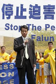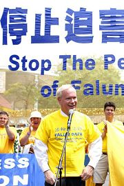 中国自由网络创始人约翰•库西尼在集会演讲中表示,非常遗憾的看到中共把地震灾难当作转嫁仇恨加剧迫害法轮功的政治手段。他说,我知道法轮功是一个真正关心中国的团体,他们关心中国的历史、文化,以及中国的现在和未来。