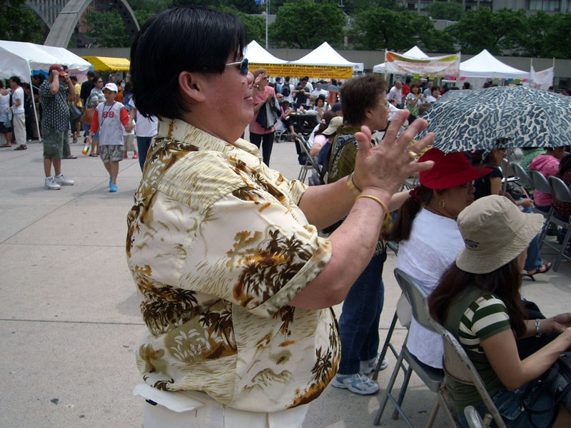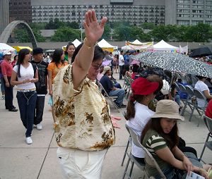 【明慧网二零零八年六月十六日】(明慧记者叶灵辉多伦多报道)二零零八年六月十四日,多伦多菲律宾中心(The Filipino Centre Toronto)在加拿大多伦多市府前的弥敦·菲律浦广场(Nathan Phillips Square)举办庆祝菲律宾独立一百一十周年活动。由法轮功学员组成的莲花艺术团及天国乐团,受到观众热烈欢迎。