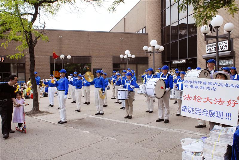 ![]() 天国乐团在法拉盛演奏“法轮大法好”等乐曲 |