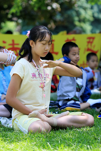 ![]() 明慧学校的法轮大法小弟子们专注的炼功 |
