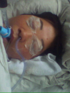 约6月12日下午5点左右,恶警打电话让其家人到青岛海慈医院看人,当时肖素敏全身发肿,在大腿根部输液,手脚及大腿根部发紫,脖子上有比针眼大的三个小孔。医生说其肺、肾已损坏,无排尿功能,人一直昏迷。
