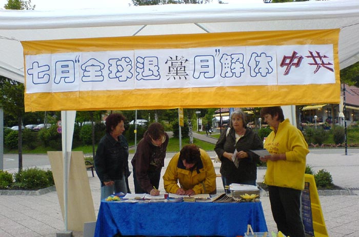 一位德国大学生问:他周围的中国留学生为什么拒绝真相,对中共当局认识不清?学员告诉他:这些留学生是在中国的“党文化”中长大的,受共产党欺骗,不愿意或没有机会了解真相,但毕竟他们已经在海外,能够看到法轮功在海外洪传,抗议残酷迫害的浩大声势,和国际来自各界的正义呼声与支持,一旦他们能够认真的思考一下,就会明白真相。