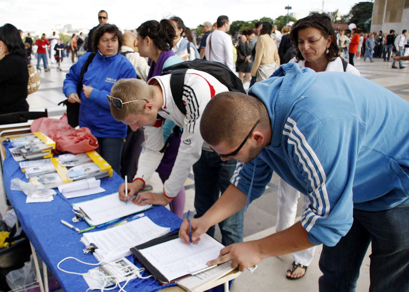 法国法轮功学员在巴黎人权广场上的反迫害活动已经坚持了九年,九年中大法弟子秉承和平理性,让全世界来到这里的社会各界人士及民众目睹了法轮大法弟子的风范。