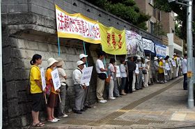 ![]() 福冈中领馆前,抗议中共对法轮功的迫害。 |