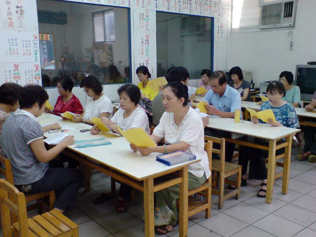 老年学员谢先生说:我本身不太会讲话,但我每周都会参与打电话讲真相,虽然我不会讲话,但我可以照稿子念,一样可以达到讲真相的目地,帮可贵的中国人三退。