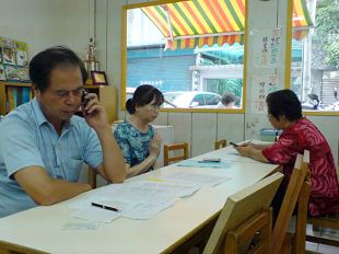 在内坜,有一位老年同修平时因为帮忙带孙子,有将近半年没有拿起电话,今天他也劝退一位年轻人,渐渐对讲真相充满了信心,更主动提起希望当地能有假日的打电话时段安排,让她能再度回到集体打电话救众生的行列来。