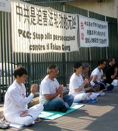 从一九九九年至今,中共对法轮功的惨绝人寰的迫害持续了九年,意大利法轮功学员坚持在米兰中领馆前讲真相、反迫害已经六年多了,风雨无阻。