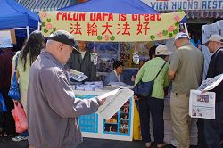 在旧金山湾区,还有些人没有听说过法轮功。来自伯克利市的Karen听了法轮功的介绍后,认为法轮功很好。她听到在伯克利市也有法轮功的炼功点,表示很感兴趣。了解到中共对法轮功的迫害,她表示这令人感到悲哀。她祝法轮功好运。