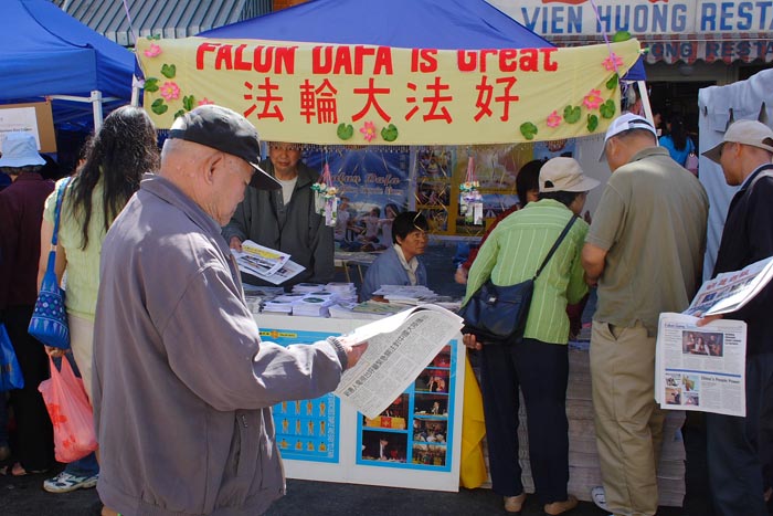 奥克兰市的黄老夫妇经常阅读大纪元时报,同情法轮功。他们不光自己看大纪元报纸,还介绍给朋友看。黄先生说,现在什么报纸都不好,只有大纪元办的报纸,有良心、公平。