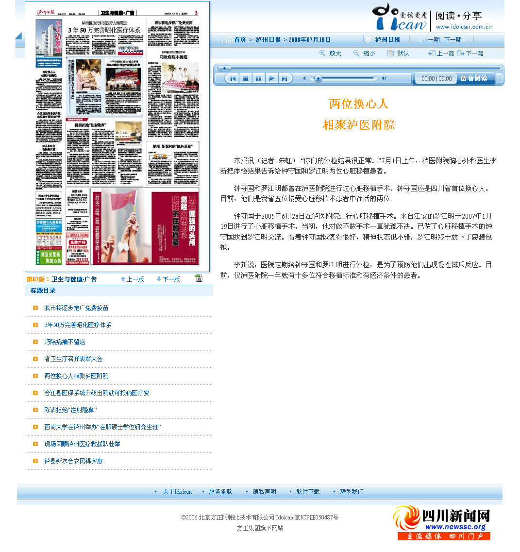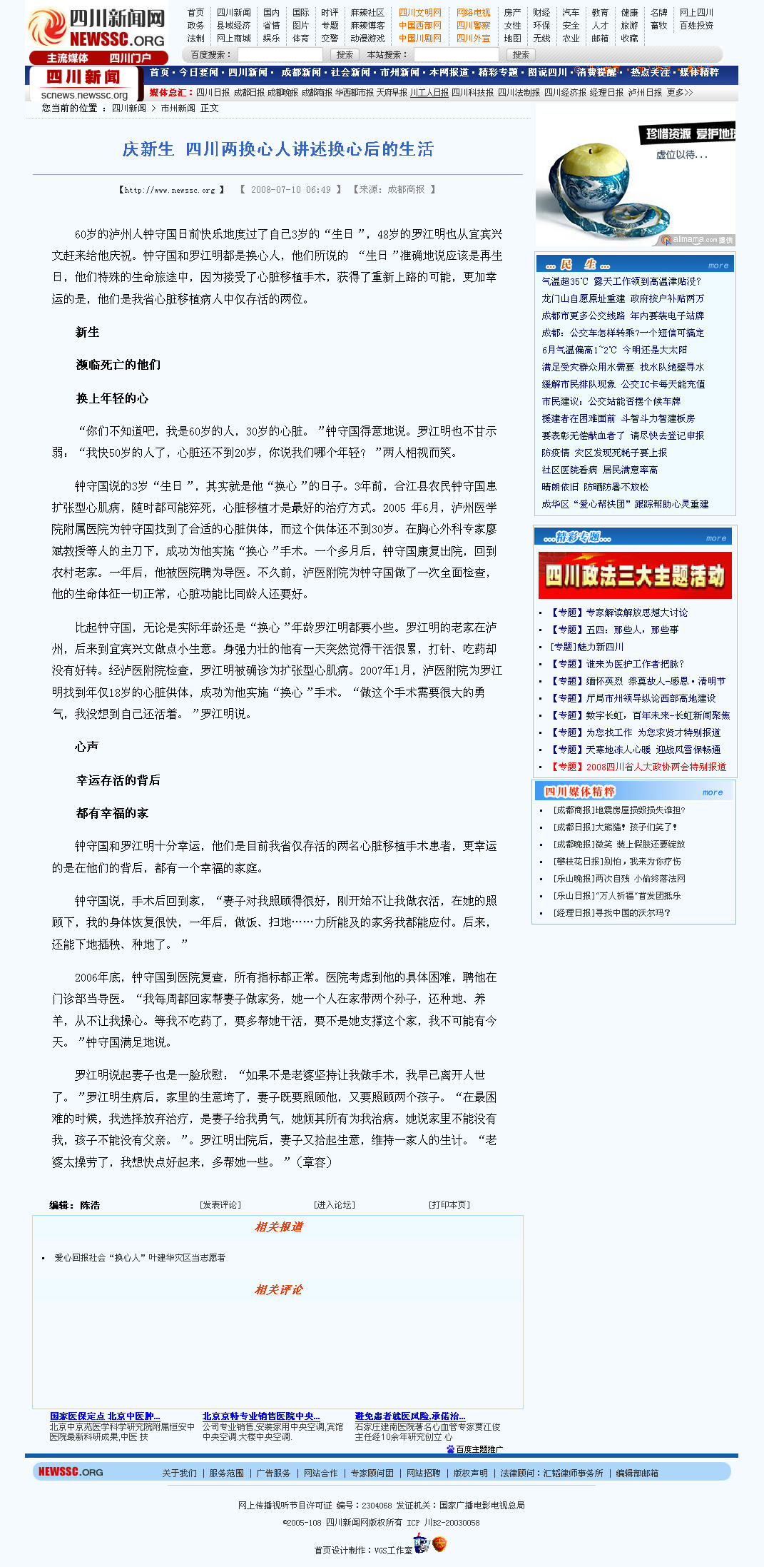 《成都商报》2008年7月10日第14版登的章容的一篇文章《四川两换心人心心相惜》文中透露2005年以来,全省一共做5例心脏移植手术,现活两人,一个钟守国,一个罗江明,手术主刀医生是泸州医学院附院胸心外科的李新。
