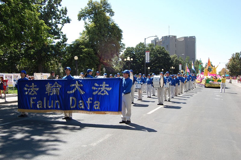 参加丹佛游行的天国乐团成员有六十人左右。星期一,他们沿着州议会大厦前进到施佩尔大道。演奏的乐曲包括“法轮大法好”和“美丽的美利坚”。游行结束的地点在民主党大会的外面。